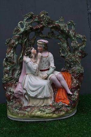 | SUPERB MID 19thC STAFFORDSHIRE MALE & FEMALE LOVER FIGURINES UNDER ARBOUR c1860s |