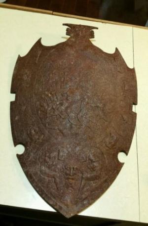 | ANTIQUE Rare WARRIORS KNIGHTS BATTLE SHIELD Ornate arms and armour |