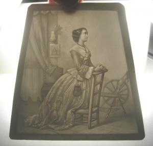 | Antique Porcelain PPM-64 Lithopane Tapered Lamp Panel -  Woman Praying Civil War |