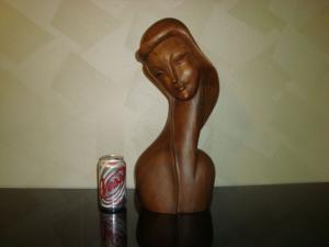| Huge 17 5/8" Vintage Hand Carved Solid Walnut Woman Lady Bust Statue Wood Figure |