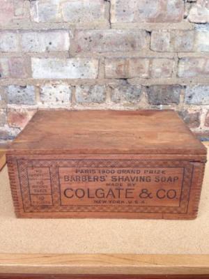 | ANTIQUE COLGATE & CO. BARBERS SHAVING SOAP WOODEN BOX CRATE |