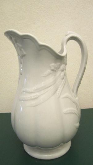 | Large Antique White Ironstone Wheat Hops Pitcher J&G Meakin  late 1800s |
