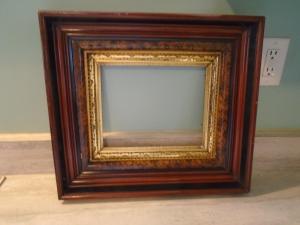 | ANTIQUE WALNUT EASTLAKE TIERED PICTURE FRAME GOLD LINER FAUX MARBLE DETAIL LARGE |