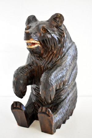 | VINTAGE ANTIQUE BLACK FOREST CARVED BEAR HOLDER | Circa 1930s, Brienz? |