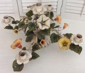 | Vintage Italian Tole Candle Holder, Morning Glory, Large Centerpiece, Stunning!! |
