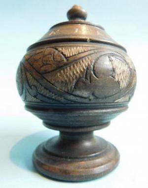 | Antique 19th Century Star Pattern Motif Treen Pounce Pot Shaker Ink Sander |