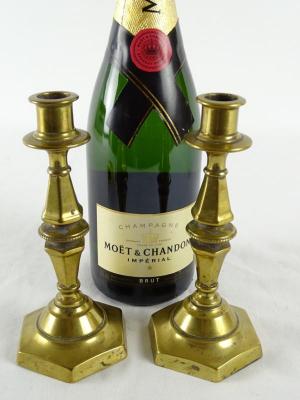 | Antique c1880  Victorian Brass Candlesticks push Ejectors England Patent Numbers |