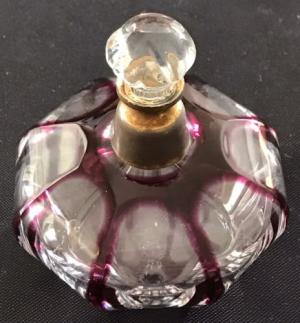 | VINTAGE SIGNED BACCARAT PERFUME BOTTLE FRANCE UNIQUE PURPLE CUT TO CLEAR CRYSTAL |