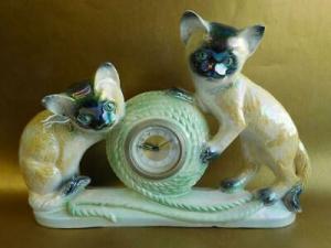 | Dutch Jemma 1950s Lustre Pottery Siamese Kitten Cats Ceramic Mantle Clock |