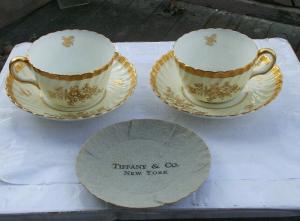 | LOT 2 Vintage Tiffany & Co. Mintons England Tea Cups & Saucers Sets Gold Trim NR |