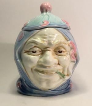 | Antique Majolica Humidor “Hooded Man” Tobacco Jar Austria c.1880-1895 |
