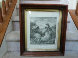 | ANTIQUE Victorian Deep Walnut Picture Frame Engraving Little Shepherdess sheep |