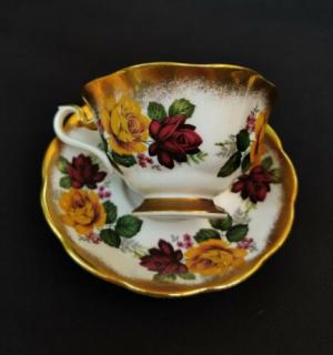 | Royal Albert Treasure Chest Large Red Yellow Roses Porcelain Tea Cup Saucer VFC |