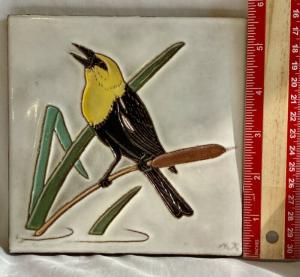 | Vtg McKusick Pottery Southwest Yellow Headed Blackbird Artist Signed CeramicTile |