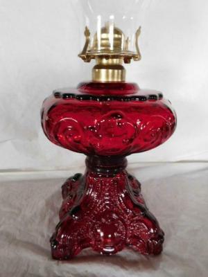 | vintage old antique red glass kerosene oil lamp dresser table desk nightstand |