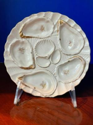 | Registrirt German Oyster Plate Gilt and Cream 5 Wells - FREE SHIPPING |