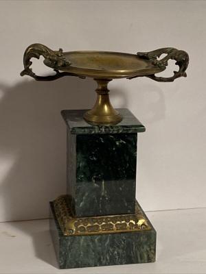| Antique Neoclassical Style Bronze & Marble Tazza Urn 10 1/4”h |