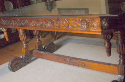 Antique Indian head Dining Room table and China and Breakfront cabinet