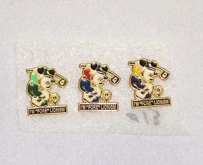 3 Lions Club "I'm Fore Lionism" Pins Featuring Mickey Mouse Golfing