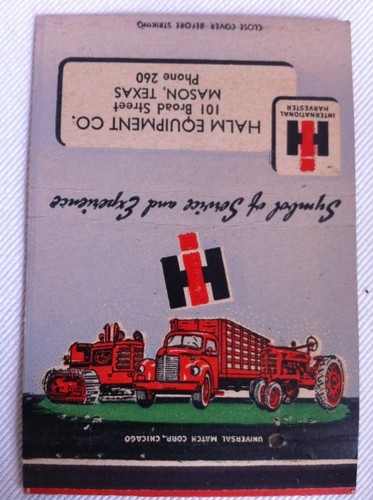 Vintage International Harvester Mason TX Matchcover Royal Flash Billboard