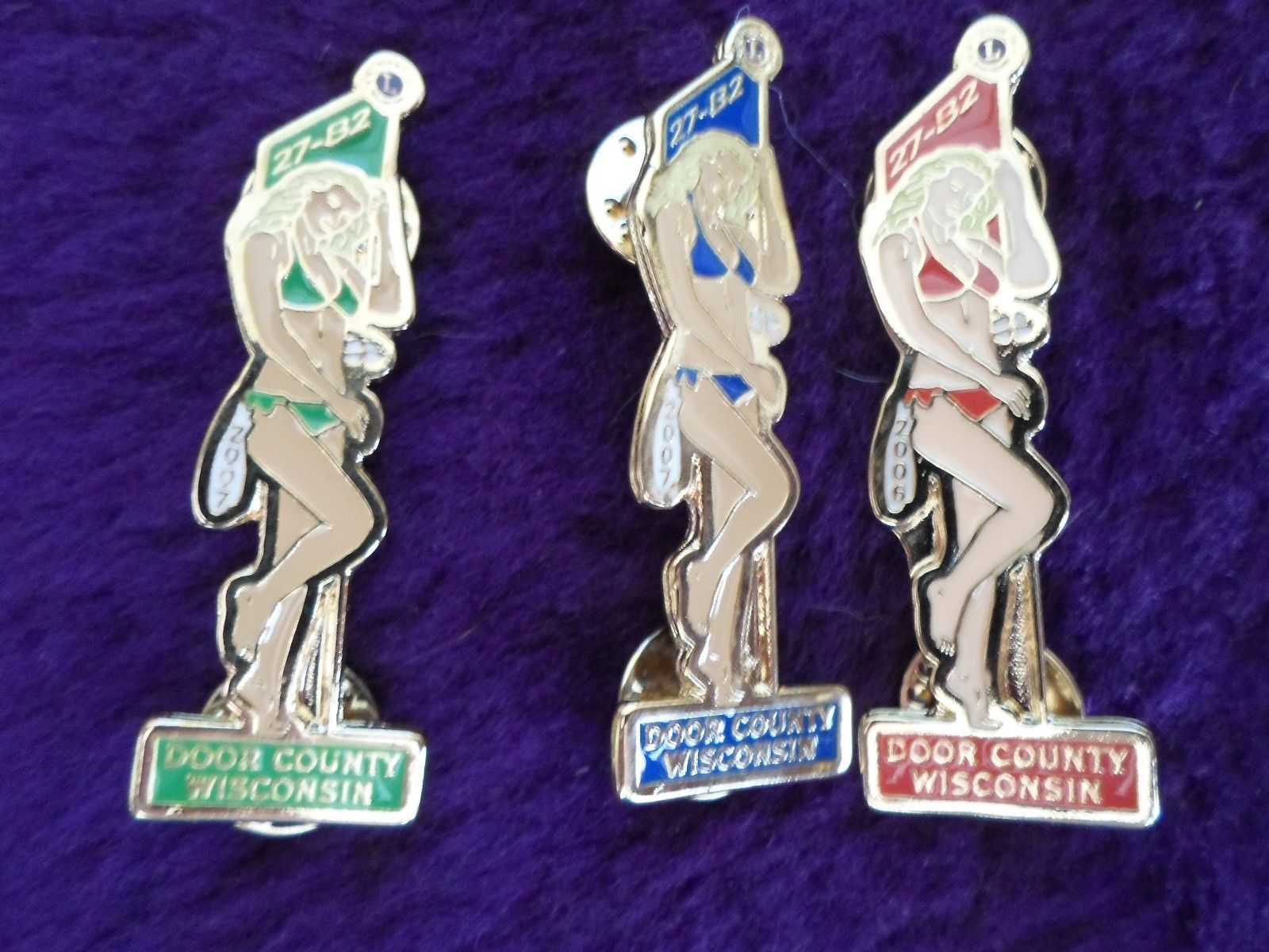 LIONS CLUB PINS - 3 DOOR COUNTY, WISCONSIN PINS - BIKINI LADIES