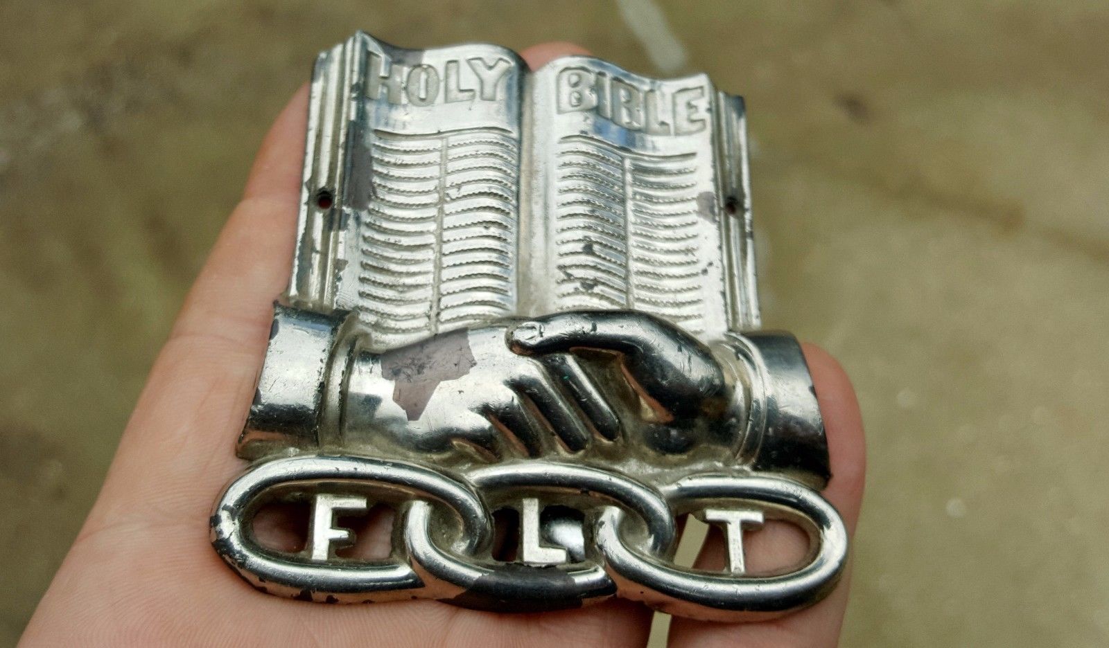 Old Vintage Antique IOOF International Order of Odd Fellows FLT Holy Bible Badge