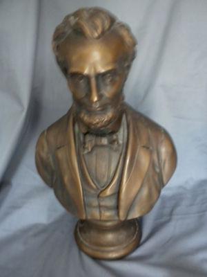 VTG Abraham Lincoln Chalkware Bust by Alexander Backer Bronze Color Finish 17"