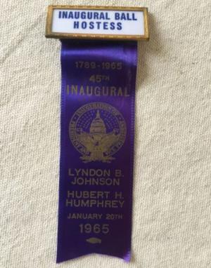 Political Badge Ribbon Seal Gold Metal 1965 Inaugural BallHostess President LBJ