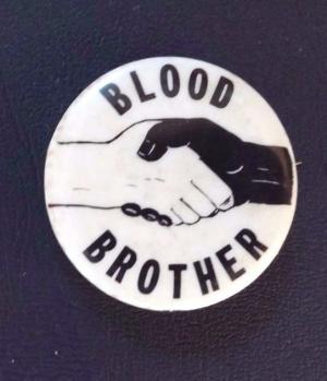 BLOOD BROTHER - 1960's SNCC Protest Button - Black and White Handshake button
