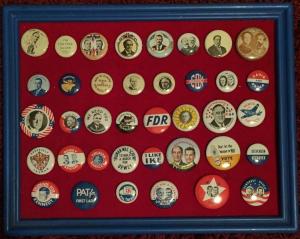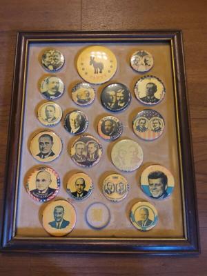 Vintage historical Democratic Party campaign buttons with plaque 12" x 15"