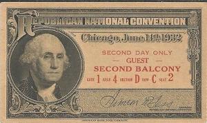 Ticket Stub Republican National Convention Chicago Stadium 1932 Hoover & Curtis