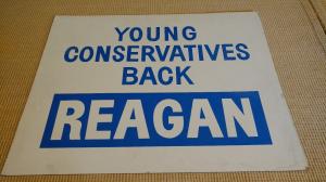 Vintage "Young Conservatives Back Reagan" Cardboard Sign / Poster