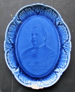 President Grover Cleveland Blue German Ceramic Stoneware Dish or Tray
