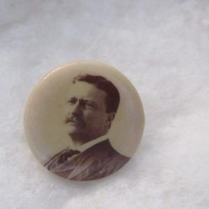 1904 THEODORE TEDDY ROOSEVELT CAMPAIGN PINBACK CELLULOID SEPIA TONE W/ BACKPAPER