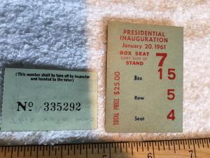 1961 Kennedy Presidential inaugaration ticket stub w/ 1960 Nixon voter stub