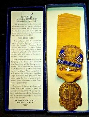 1948 Democratic DNC Political Philadelphia DELEGATE Ribbon Badge Pin W/ BOX