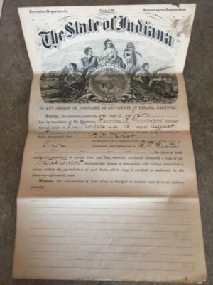 1884 State of Indiana Governor Albert Porter Signed Warrant Document