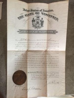 1883 State of Wisconsin Governor Jeremiah Rusk Signed Rape Indictment Document