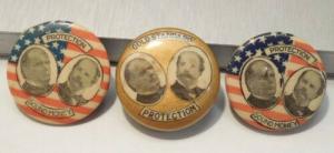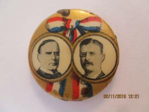 1900 CELLO BUTTON PINS 7/8" JUGATE MCKINLEY ROOSEVELT FOR PRES & VP