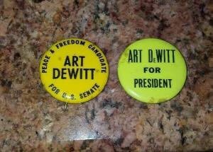Art DeWitt Eldridge Cleaver Peace and Freedom Party political campaign pinback