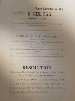 HOUSE IMPEACHMENT RESOLUTION OF PRESIDENT DONALD TRUMP