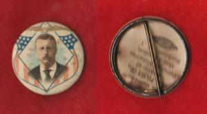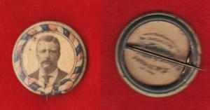 1904 ORIGINAL TEDDY ROOSEVELT - FAIRBANKS 7/8" PINBACK WHITEHEAD & HOAG PAPER