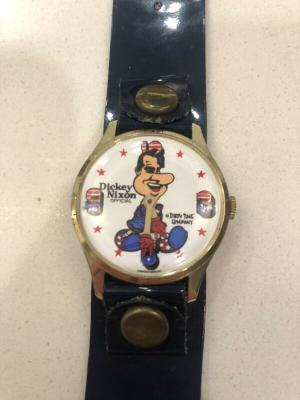 VINTAGE 70''s Dickie Nixon Official Wind Up Watch Political Character Watch Works