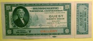 1924 Democratic National Convention Guest Ticket VG w/stub