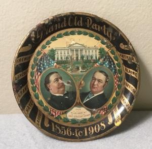 Antique 1908 William Howard Taft VP Sherman Grand Old Party Campaign Tin Tray