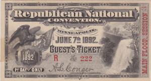 1892 REPUBLICAN NATIONAL CONVENTION TICKET / HARRISON