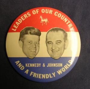 Kennedy Johnson Friendly World campaign button JFK LBJ
