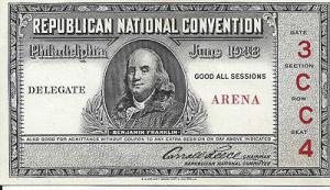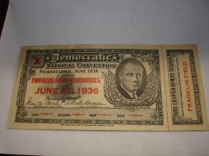 FRANKLIN ROOSEVELT 1936 CONVENTION TICKET UNUSED