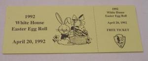 White House Easter Egg Roll 1992 Yellow Admittance Ticket George Barbara Bush