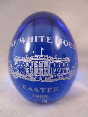 PRESIDENT CLINTON WHITE HOUSE GLASS EASTER EGG COBALT BLUE 1995